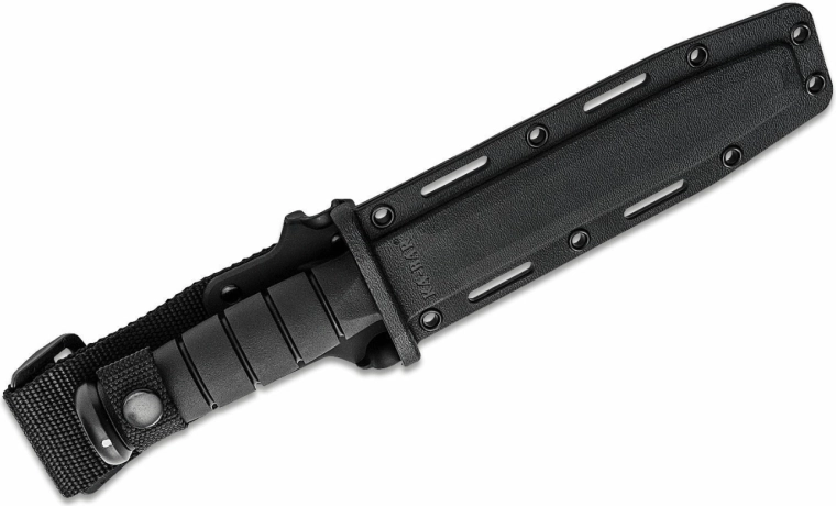 KA-BAR Full Size Black to niezawodny nóż do outdooru, turystyki i zastosowań taktycznych. Nawiązuje do sprawdzonego wojskowego projektu USMC, dzięki czemu wyróżnia się wytrzymałością, funkcjonalnością i pewnością działania w każdej sytuacji. Głownia typu Clip Point z gładkim ostrzem i czarną powłoką zwiększa odporność na korozję i redukuje odblaski.