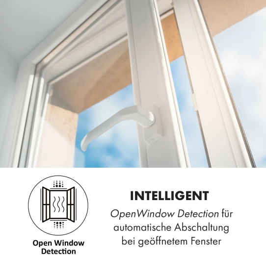 - Open Window Detection: automatyczne wyłączenie przy otwartym oknie