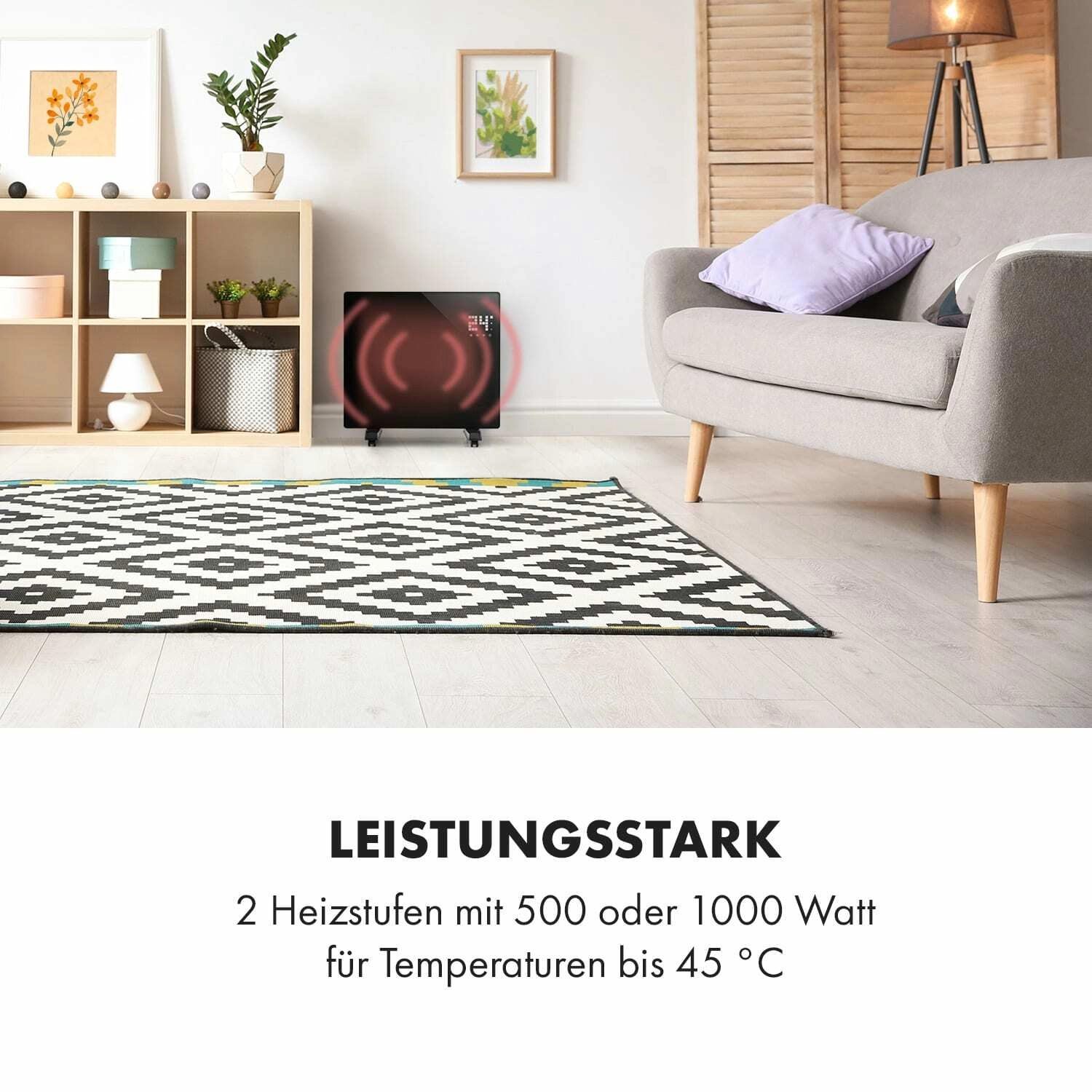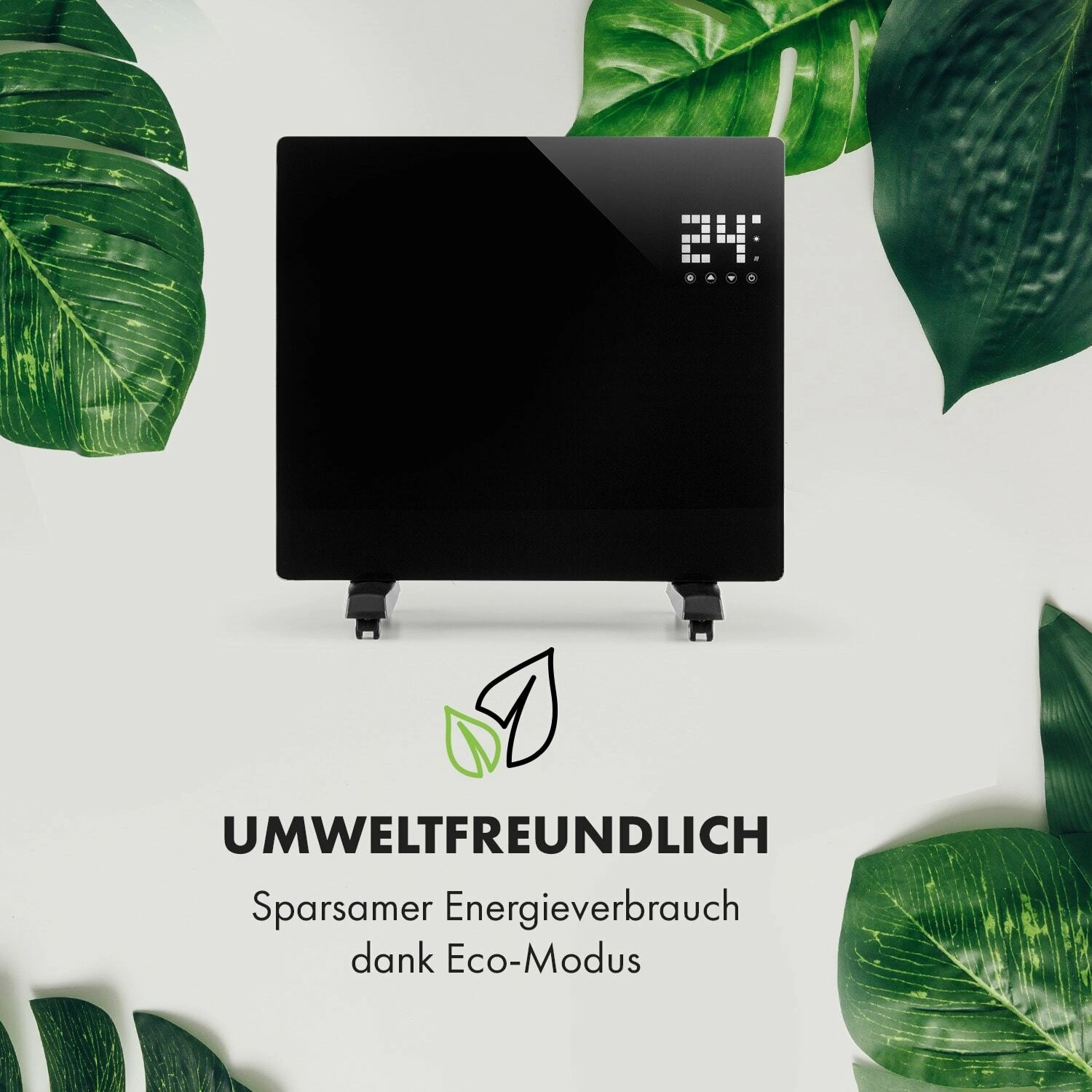 Elegancki konwektor Klarstein Bornholm Single Smart zapewnia szybkie i równomierne ogrzewanie pomieszczeń do 20 m². Oferuje 2 poziomy mocy (500/1000 W), precyzyjny termostat do 45 °C, tryb ECO dla oszczędności energii oraz sterowanie przez aplikację Wi‑Fi, panel dotykowy i pilot. Szklany panel przedni z IP24 nadaje się także do łazienki, a tygodniowy timer zapewni ciepło dokładnie wtedy, gdy tego potrzebujesz.