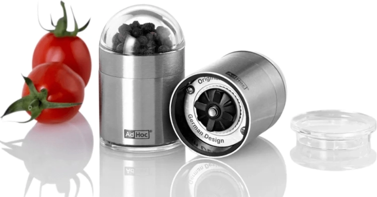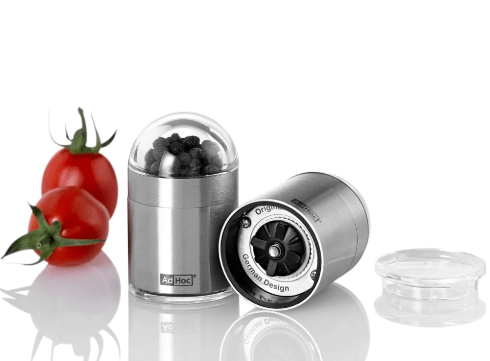 Miniaturowy młynek do przypraw i soli AdHoc PEKNICK jest idealny w podróży dzięki kompaktowym rozmiarom. Oferuje opatentowany ceramiczny mechanizm CeraCut® odporny na zapachy i korozję, płynną regulację grubości mielenia oraz przezroczystą pokrywkę ograniczającą rozsypywanie i wietrzenie przypraw.