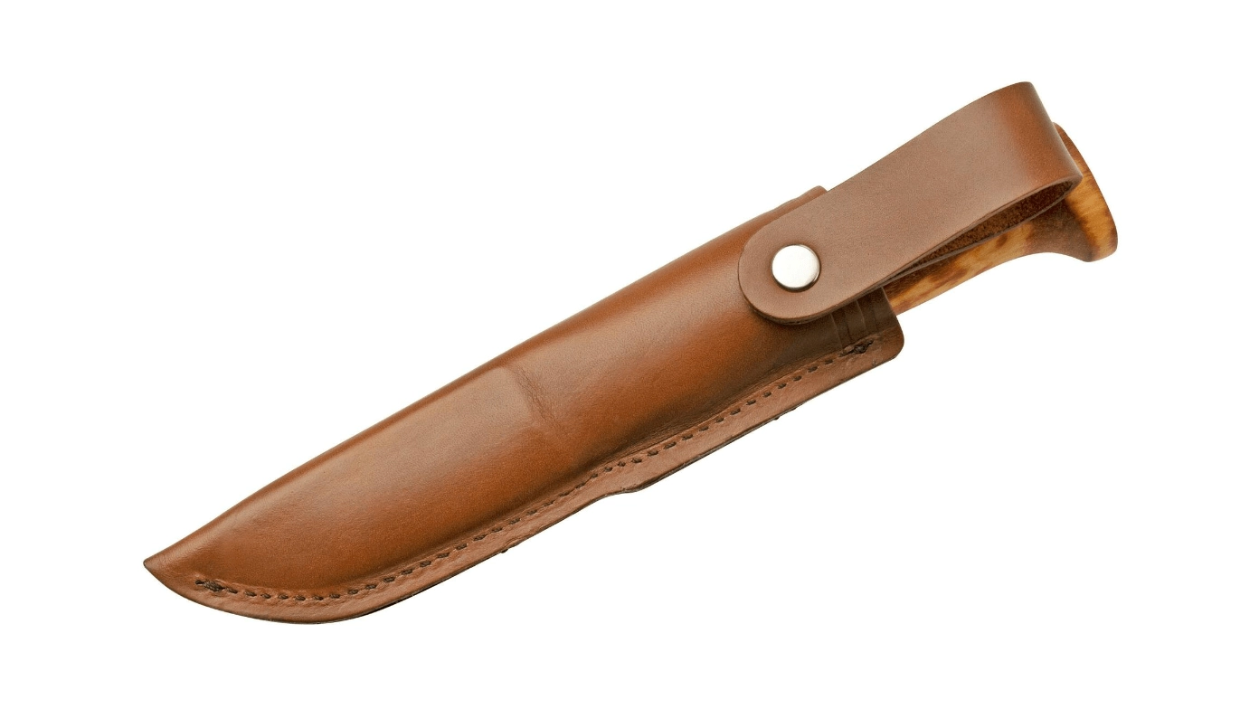 Stała głownia ze stali nierdzewnej Sandvik 12C27 z gładkim ostrzem zapewnia niezawodne trzymanie ostrości, odporność na korozję i łatwe ostrzenie w terenie. Ręcznie szlifowana, polerowana i olejowana rękojeść z jednego kawałka kędzierzawej brzozy nadaje nożowi wyjątkowy charakter i naturalny wygląd. W zestawie znajduje się skórzane etui do bezpiecznego noszenia.