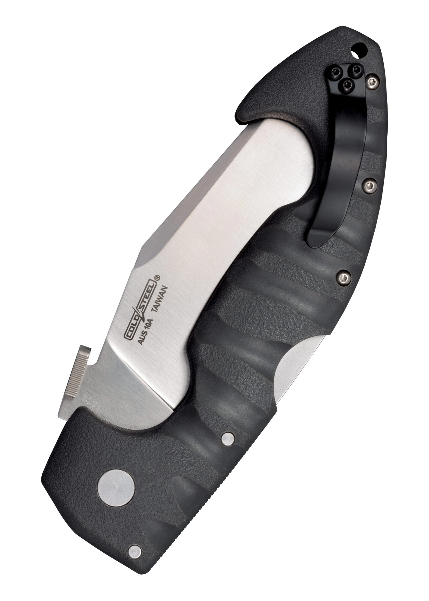 Solidny nóż składany Cold Steel Spartan Serrated inspirowany spartańskim mieczem KOPIS oferuje ząbkowane ostrze z japońskiej stali AUS-10A z satynowym wykończeniem, bezpieczną blokadę Tri-Ad Lock oraz wytrzymałą rękojeść Griv-Ex w szarym kolorze. Szybkie otwieranie zapewnia dysk pod kciuk, a całość uzupełnia klips do kieszeni i otwór na linkę.
