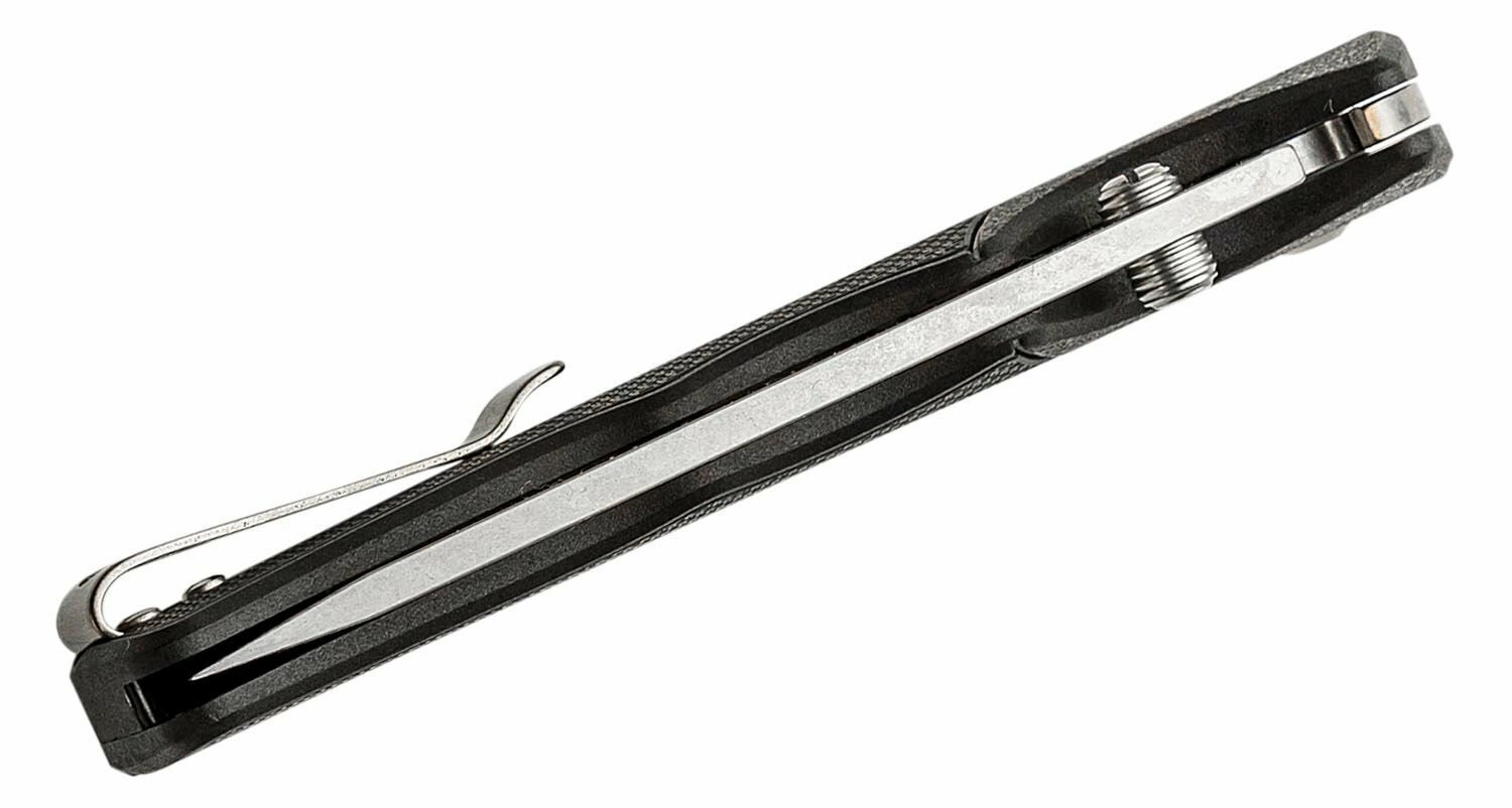Teksturowana rękojeść z GFN zapewnia pewny chwyt. Klips kieszonkowy i otwór na linkę umożliwiają wygodne i bezpieczne codzienne noszenie.