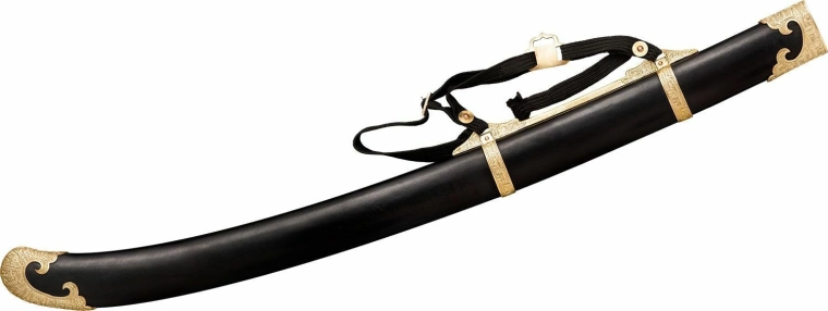 Elegancka replika historycznej chińskiej szabli kawaleryjskiej dla kolekcjonerów i miłośników broni. Oferuje ręczne kucie ze stali 1060, dekoracyjne mosiężne okucia oraz rękojeść z twardego drewna oplecioną jedwabnym sznurem. W zestawie skórzana pochwa z mosiężnymi elementami dla bezpiecznego przechowywania i efektownego wyglądu.
