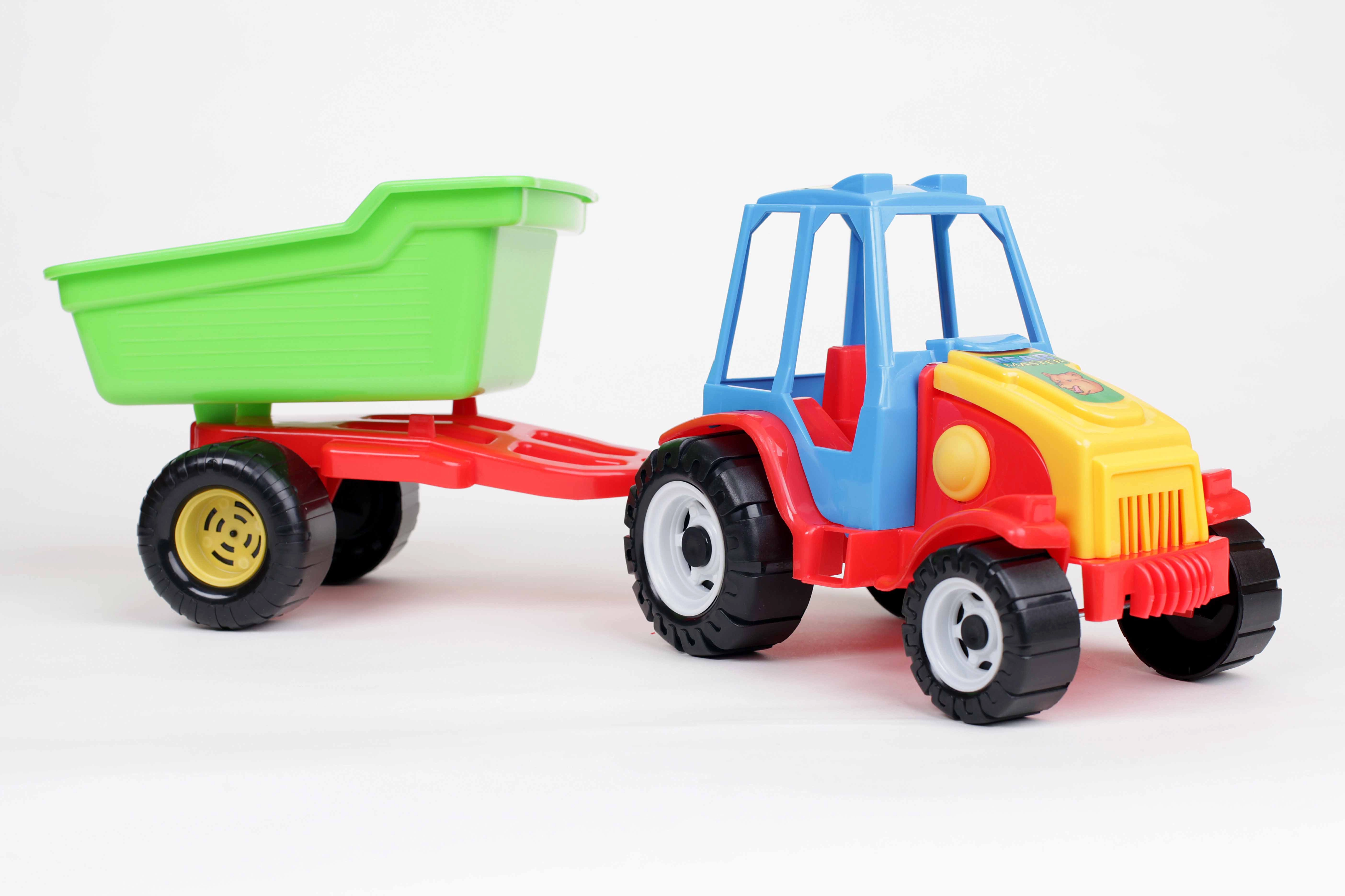 - Plastowy traktor z odczepianą, wywrotną przyczepą
