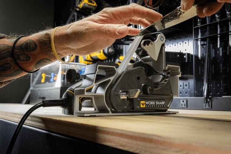 Nasadka Work Sharp Blade Grinder Mk2 zamienia Twoją ostrzałkę Ken Onion Edition Knife & Tool Sharpener Mk.2 w wydajny, stacjonarny system do poziomego szlifowania. Dzięki w pełni regulowanym kątom ostrza od 10° do 35° oraz większym pasom 1" x 18" uzyskasz maksymalną precyzję, kontrolę i powtarzalność podczas ostrzenia noży kuchennych, outdoorowych i roboczych.