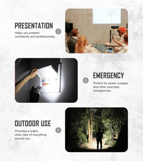 Eleganckie, płaskie korpus z metaliczną fakturą i stalowym klipsem zapewnia pewny chwyt, łatwe noszenie w kieszeni oraz szybkie przypięcie do paska. Maksymalny strumień świetlny 1 000 lumenów i zasięg do 101 metrów gwarantują niezawodne oświetlenie w mieście, w warsztacie i w terenie. Zintegrowany zielony laser sprawdzi się podczas prezentacji i do zabawy z pupilami.