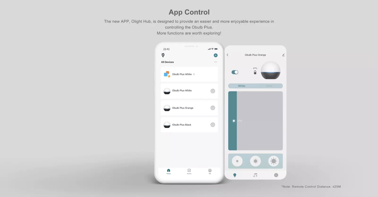 Przez Bluetooth w aplikacji OLIGHT łatwo ustawisz kolor, jasność, sceny i sprawdzisz poziom baterii. Dostępne jest także sterowanie grupowe, tryby muzyczne, rytm oraz timer.