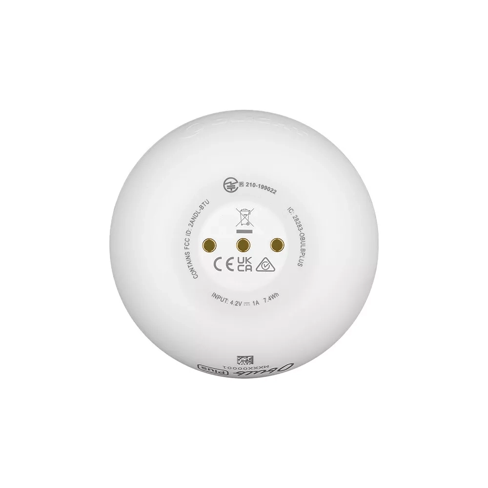 Kompaktowa, przenośna i inteligentna lampka LED Olight Obulb Plus White do domu i na outdoor. Oferuje do 300 lm, tryby RGB, sterowanie dotykowe oraz aplikację przez Bluetooth do zmiany jasności, koloru i sterowania grupowego. Dzięki magnetycznemu ładowaniu, długiemu czasowi pracy do 49 h i odporności IPX7 jest idealna jako lampka nocna, do relaksu i na kemping.