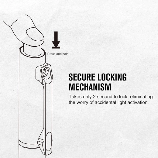 Lekkie aluminiowe korpus AL6061‑T6 z teksturowanym chwytem, kieszonkowy klips oraz funkcja blokady dla bezpiecznego przenoszenia bez przypadkowej aktywacji.