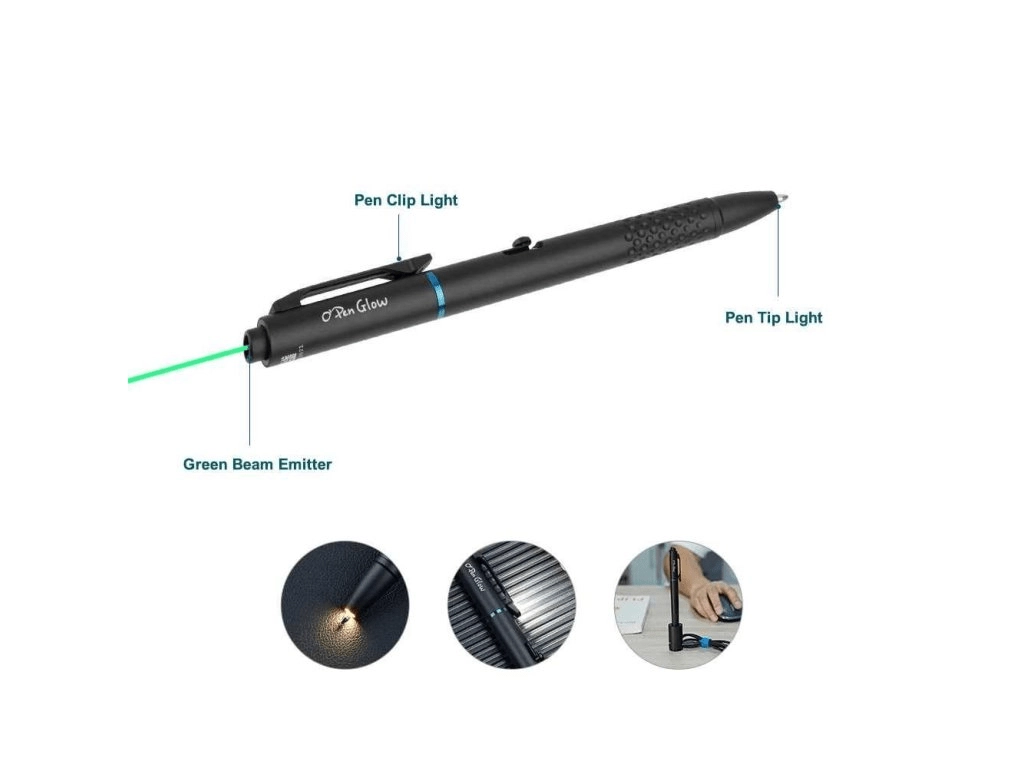 Wielofunkcyjny długopis OLIGHT O'Pen Glow łączy pisanie, światło LED w klipsie (5–120 lm), LED w końcówce długopisu oraz zielony wskaźnik laserowy w eleganckiej obudowie ze stopu aluminium. Oddzielne włączniki dla światła i lasera zapewniają intuicyjną obsługę, a stacja ładująca z USB‑C utrzymuje długopis zawsze gotowy do pracy. Lekka i wytrzymała konstrukcja, wygodny chwyt oraz blokada do bezpiecznego przenoszenia czynią O'Pen Glow perfekcyjnym narzędziem EDC do pracy, czytania i prezentacji.