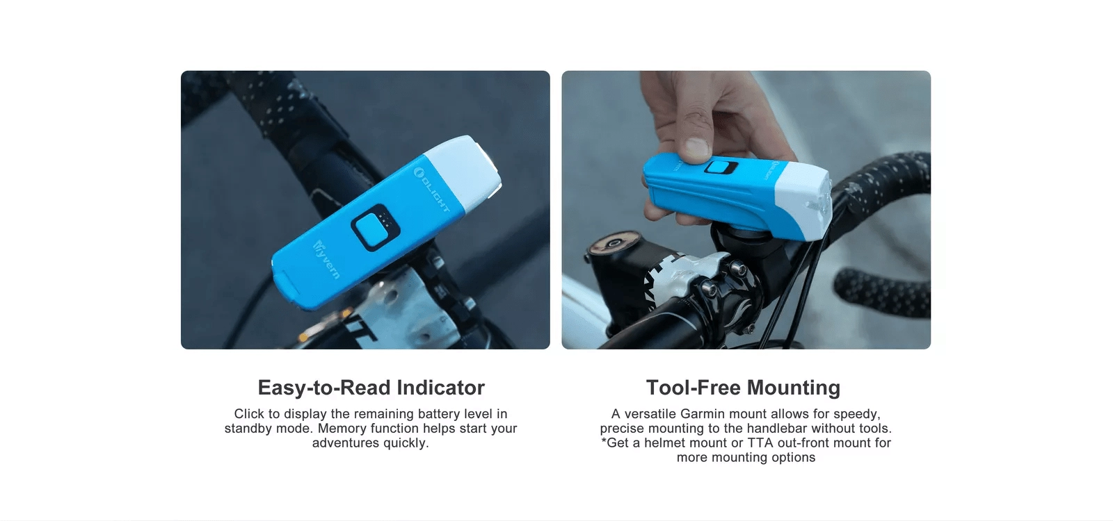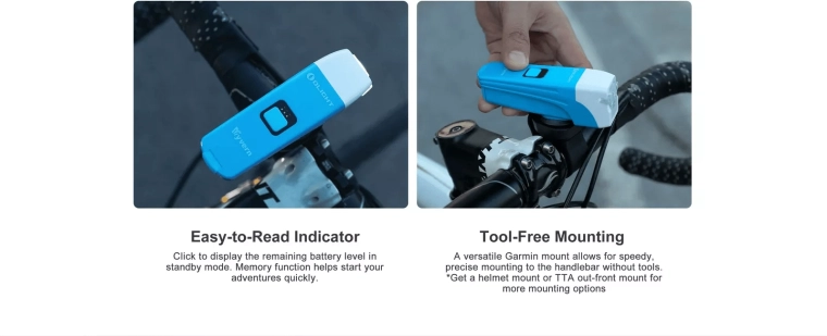 Uniwersalny interfejs Garmin™ umożliwia błyskawiczne zakładanie i zdejmowanie z kierownicy. Kompaktowa konstrukcja idealnie sprawdzi się także jako światło na kask.