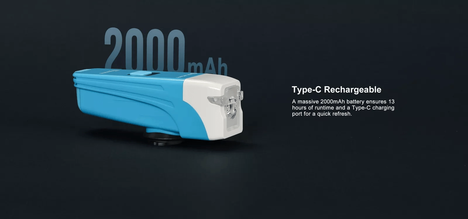 Dzięki zintegrowanemu akumulatorowi 2000 mAh i ładowaniu USB‑C uzupełnisz energię w około 2,5 godziny i zyskasz do 13 godzin świecenia w zależności od trybu. Duży górny przycisk ułatwia obsługę nawet w rękawicach, a funkcja blokady zapobiega przypadkowemu włączeniu w plecaku.