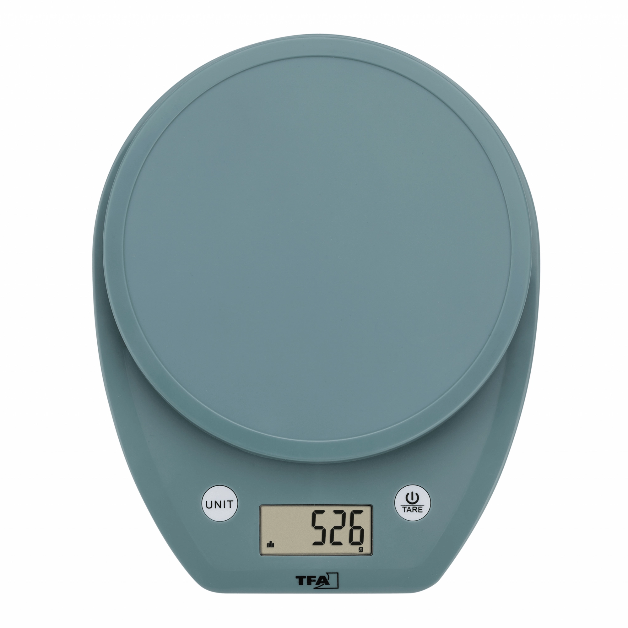 Kompaktowa cyfrowa waga kuchenna TFA MOCHI w eleganckim turkusowym kolorze oferuje precyzyjne ważenie z rozdzielczością 1 g, czytelny wyświetlacz LCD oraz łatwe przełączanie jednostek przyciskiem UNIT. Wyposażona jest w funkcję TARE do tarowania, automatyczne wyłączanie oszczędzające energię oraz antypoślizgowe nóżki zapewniające stabilność na blacie roboczym.