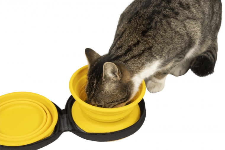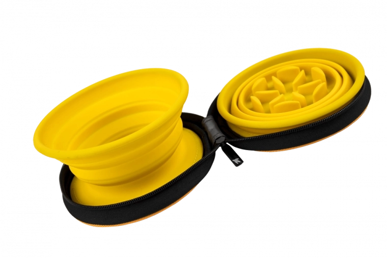 Praktyczny zestaw podróżny dwóch składanych misek z wysokiej jakości silikonu, każda o pojemności 350 ml – idealne na karmę i wodę dla Twojego pupila. Jedna miska wyposażona jest w funkcję slow feeder do spowalniania jedzenia, druga służy jako klasyczna miska. Zestaw umieszczony w wytrzymałym etui z rzepem wewnątrz i solidnym zamkiem dla bezpiecznego zamknięcia.