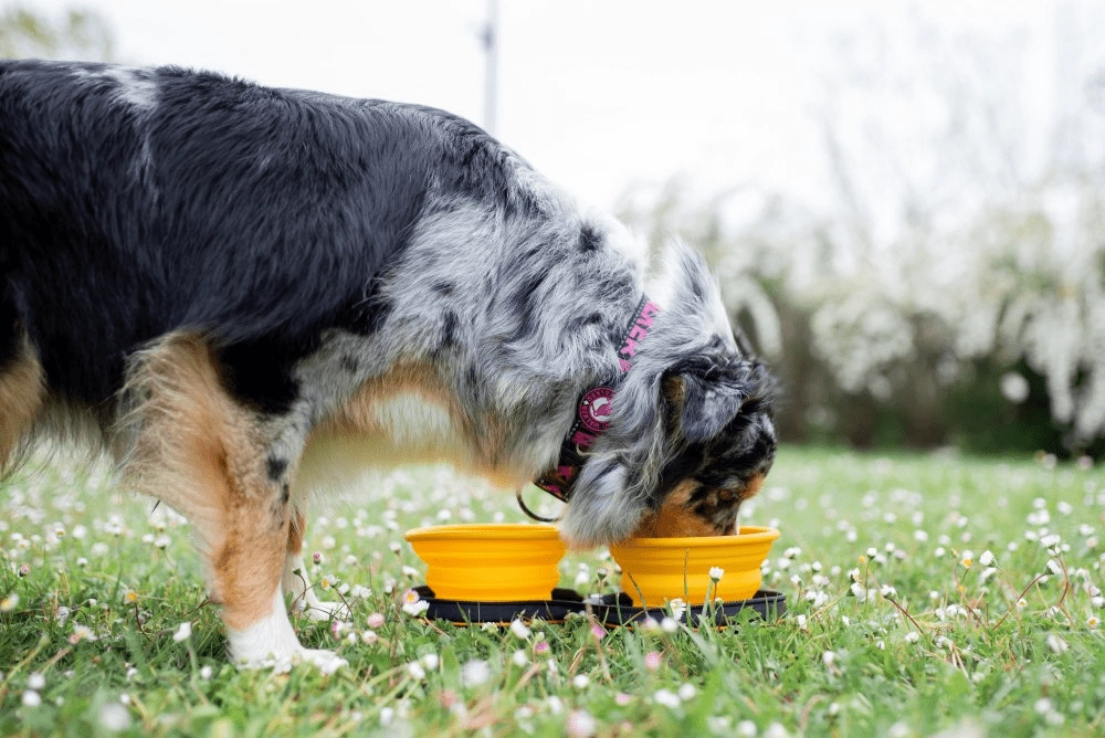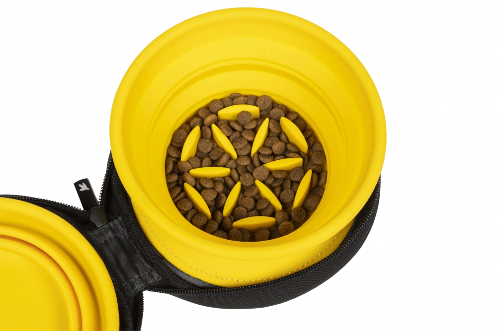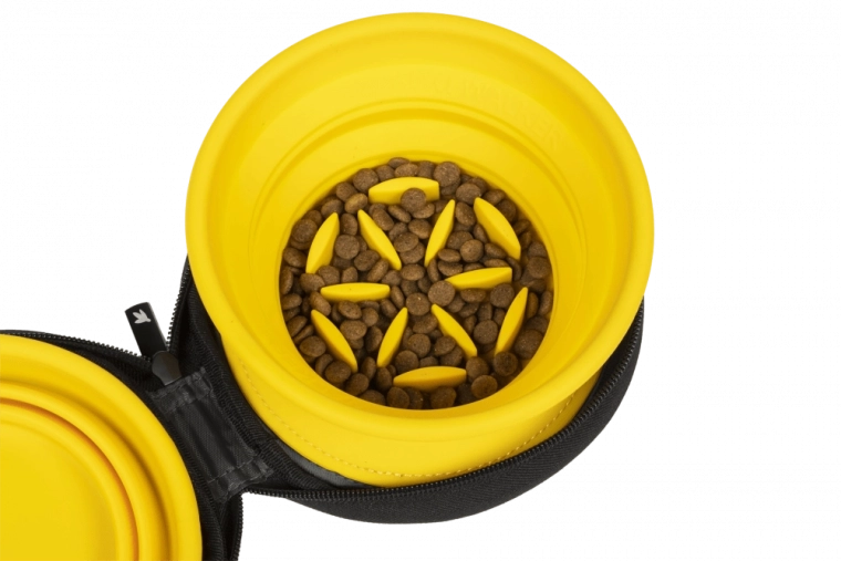 Specjalna konstrukcja jednej miski działa jako slow feeder, który spowalnia jedzenie, wspiera lepsze trawienie i pomaga zapobiegać wzdęciom. Druga miska jest gładka do codziennego użytku. Obie są lekkie, wytrzymałe i łatwe w czyszczeniu – idealne na wycieczki, wakacje oraz do codziennego stosowania.