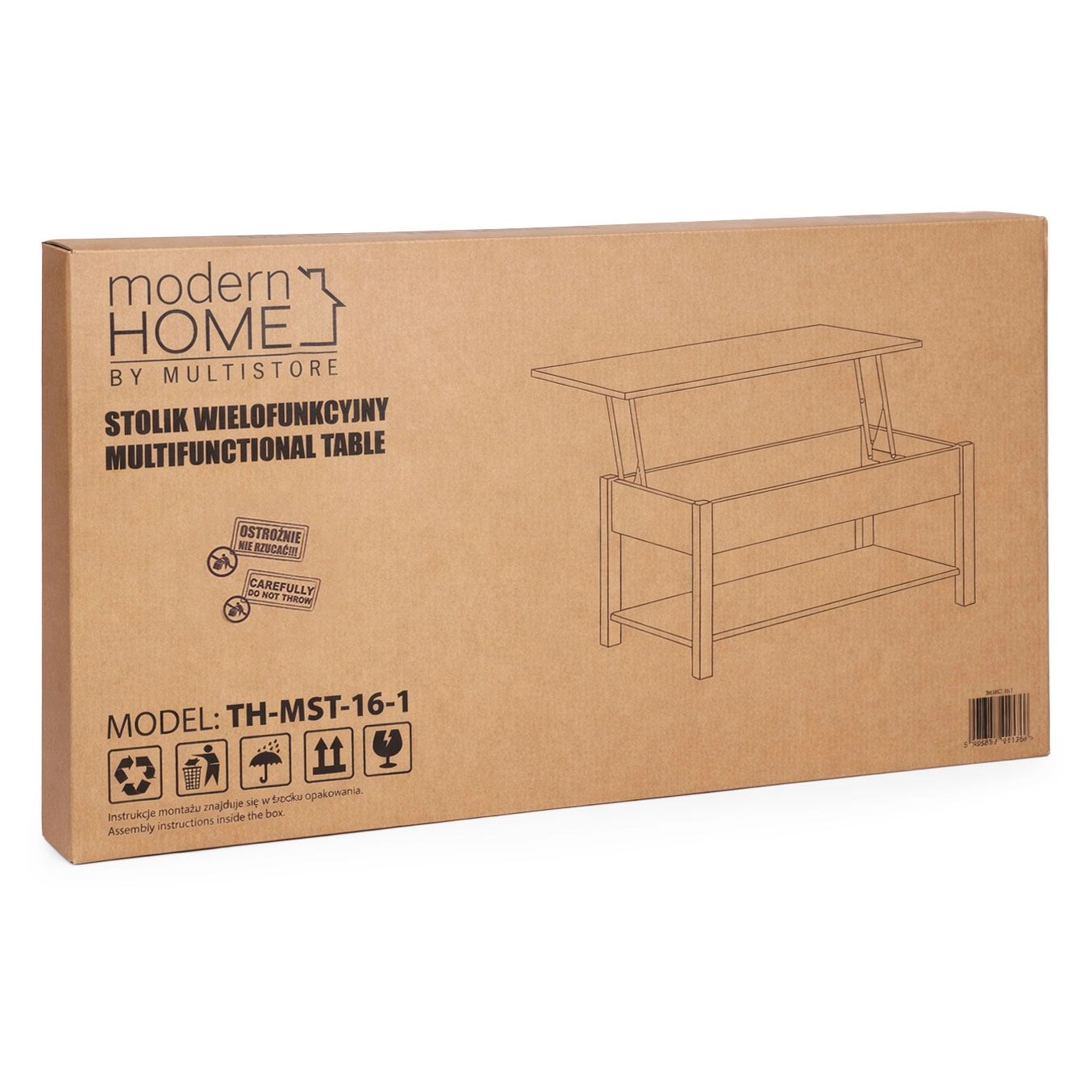 Pod blatem znajduje się duży ukryty schowek na piloty, dokumenty i inne drobiazgi, a otwarta dolna półka pomieści książki, czasopisma lub dekoracje. Metalowy mechanizm podnoszący gwarantuje płynny i stabilny ruch oraz bezpieczne utrzymanie blatu w pozycji bez nagłego opadania.