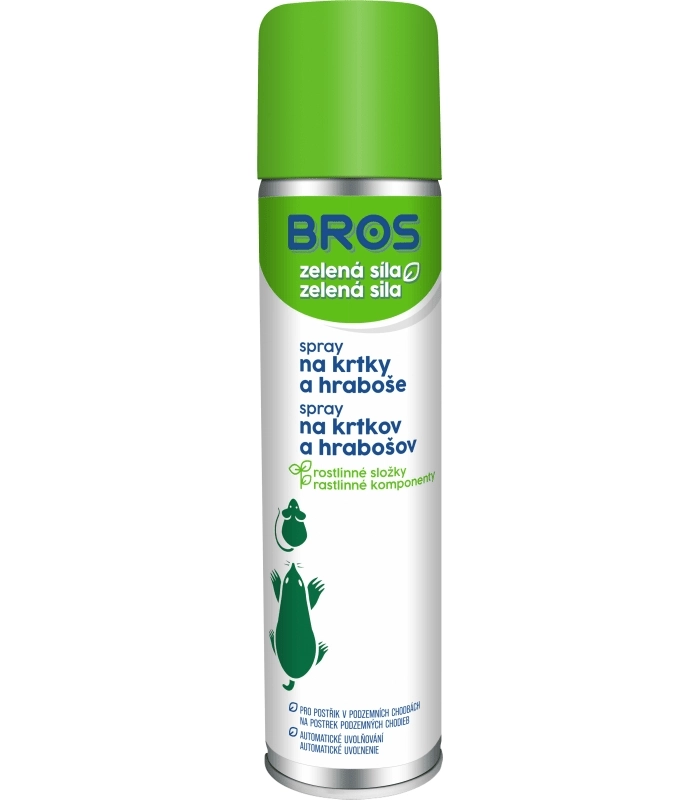 Bros Zielona Siła spray przeciw kretom i nornicom 400 ml skutecznie wypełnia podziemne tunele i pozostawia ochronną warstwę na ich ściankach. Łatwa aplikacja – jednym naciśnięciem uwalnia całą zawartość i zapewnia długotrwałe działanie do 2 tygodni. Zawiera aktywne substancje pochodzenia roślinnego.