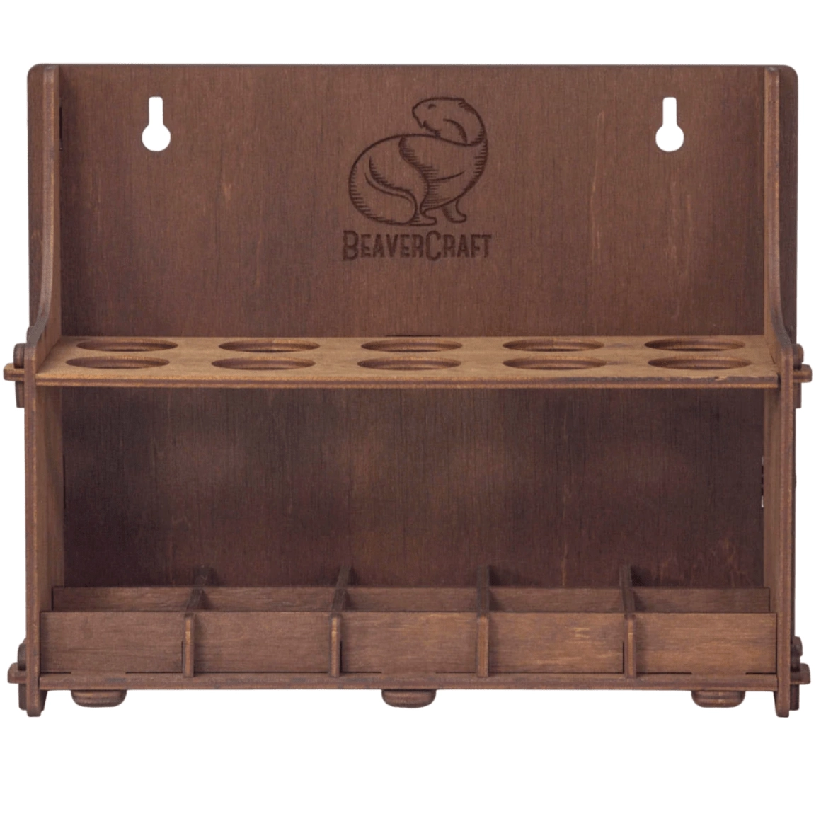 Uporządkuj swoją pracownię dzięki uchwytowi na narzędzia BEAVERCRAFT TH10. Ten wytrzymały stojak ze sklejki pomieści noże do rzeźbienia w drewnie, małe dłuta, przecinaki i inne narzędzia. Dzięki wkładkom z pianki polimerowej na dnie ostrza są chronione, a przechowywanie ostrzeniem do góry jest bezpieczne i praktyczne. Rękojeści narzędzi dokładnie wpasowują się w otwory, co zapewnia stabilność i porządek.