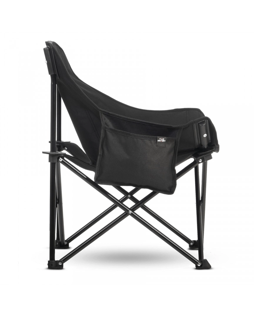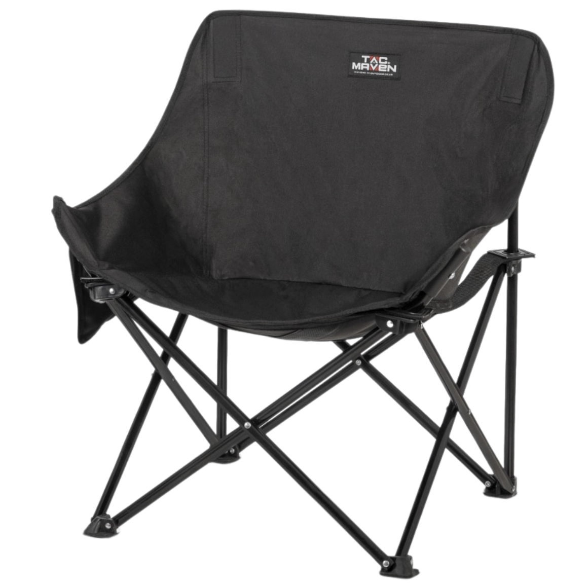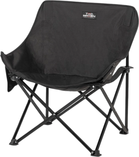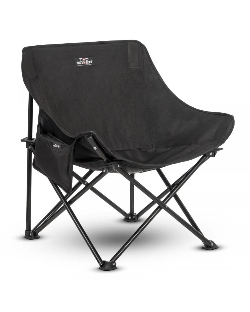 Wytrzymałe i wygodne składane krzesło kempingowe TAC MAVEN Pentagon w kolorze czarnym oferuje solidną stalową ramę, trwałą tkaninę 600D Oxford z powłoką PVC oraz udźwig do 150 kg. Dzięki wyściełanemu siedzisku, 10-stopniowemu odchyleniu oparcia i antypoślizgowym nóżkom idealnie sprawdzi się na kempingu, nad wodą, na plaży i na strzelnicy.