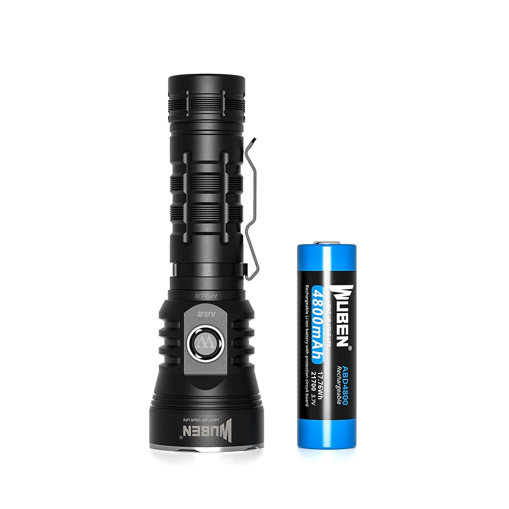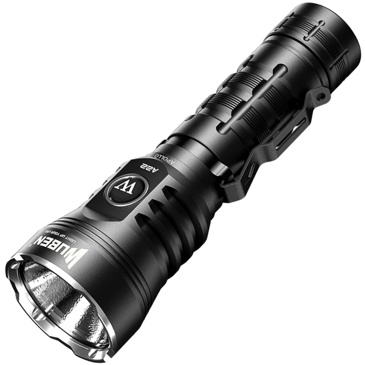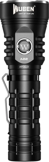 Wuben A22 to niezawodna latarka do biwakowania, turystyki, warsztatu i domu. Dzięki diodzie CREE XHP70.2 zapewnia ekstremalnie jasną wiązkę do 4 500 lumenów i zasięg 290 metrów. Ergonomiczne metalowe body z klipsem, głębokim reflektorem i bocznym przyciskiem gwarantuje wygodne i bezpieczne użytkowanie nawet w trudnych warunkach.