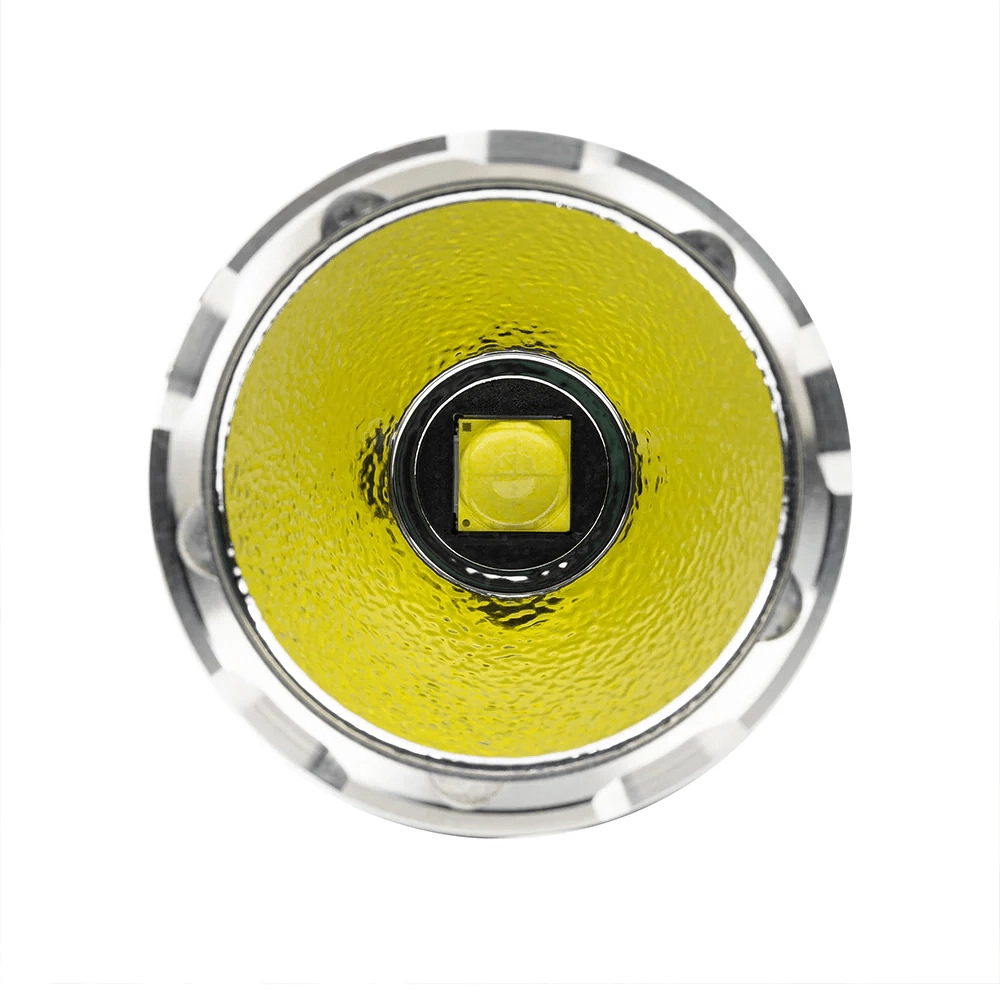Wydajna dioda LED CREE XHP70.2 z głębokim reflektorem zapewnia skupioną wiązkę o ogromnej jasności i dużym zasięgu, gwarantując pewność działania nocą i na dystansie.