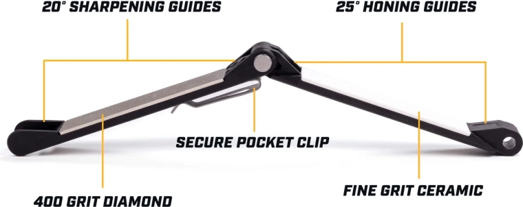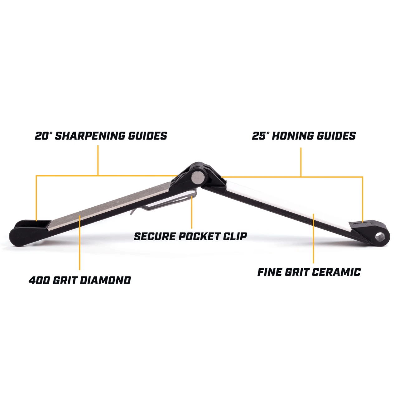 Szukasz niezawodnej kieszonkowej ostrzałki na wyjazdy, do warsztatu i w plener? WORK SHARP Folding Field Sharpener oferuje wszystko w jednym: płytkę diamentową 400 grit do efektywnego przywracania ostrości oraz drobnoziarnistą ceramikę do finalnego honowania. Zintegrowane prowadnice 20°/25° pomogą utrzymać właściwy kąt, więc wysoką jakość efektu osiągnie naprawdę każdy.