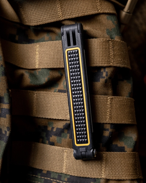 Kompaktowa rama w kształcie A składa się do kieszonkowego rozmiaru, a metalowy klips pozwala bezpiecznie przypiąć ją do plecaka, mocowania MOLLE lub kieszeni – zawsze pod ręką.