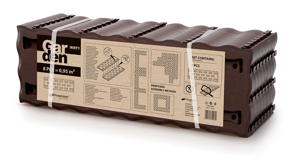 Modułowe panele wystarczy ze sobą zatrzasnąć, więc ścieżkę lub obrzeże rabaty ułożysz w kilka chwil – bez specjalistycznych narzędzi.