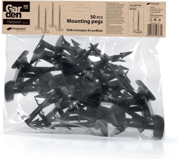 Praktyczne ogrodowe kołki HARPOON PEG 120 niezawodnie mocują agrowłókninę, folie i siatki. Dzięki ostremu grotowi i kształtowi harpuna łatwo się wbijają i trzymają bez wysuwania, a szeroka główka mocno dociska materiał do podłoża. Trwałe tworzywo radzi sobie z deszczem, mrozem i promieniowaniem UV, a dyskretny czarny kolor elegancko wtapia się w rabatę. Opakowanie 50 szt. jest idealne do większych projektów.