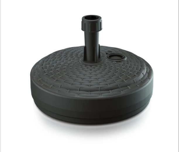 Stabilne i stylowe rozwiązanie dla Twojego parasola. Podstawa UMBRELLA dzięki napełnieniu do 10 litrów zapewnia bezpieczne zakotwiczenie nawet przy silniejszym wietrze. Powierzchnia w imitacji rattanu nadaje nowoczesny wygląd i łatwo łączy się z różnymi zestawami mebli ogrodowych.