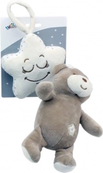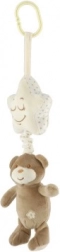 Ta urocza zawieszana zabawka łączy misia z kremową gwiazdką, w której wnętrzu ukryta jest pozytywka. Po pociągnięciu misia rozbrzmi przyjemna kołysanka, która uspokoi maluszka i ułatwi spokojne zasypianie w domu i w podróży.