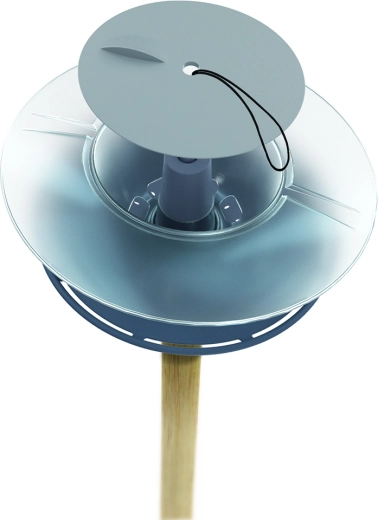 Pochyły, okrągły daszek chroni ziarno przed deszczem i śniegiem, dzięki czemu pozostaje czyste i atrakcyjne dla ptaków przez cały dzień.