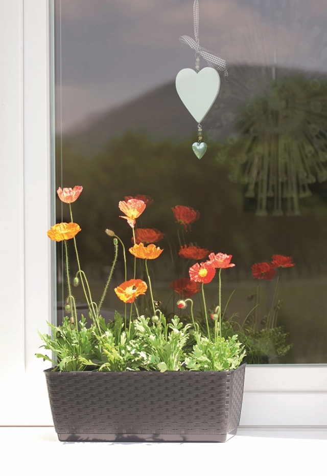 Zintegrowana podstawka skutecznie zatrzymuje nadmiar wody, pomagając utrzymać optymalną wilgotność podłoża i chroniąc przed przelaniem. Skrzynka idealnie nadaje się do uprawy kwiatów, ziół oraz drobnych warzyw i świetnie sprawdzi się na parapetach, balustradach lub krawędziach tarasów.