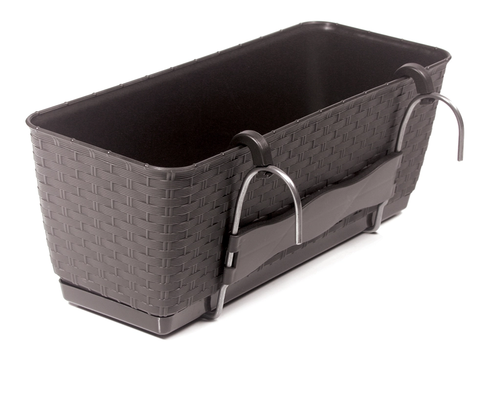 Dekor przypominający plecionkę rattanową zdobi każdy balkon, a zintegrowana podstawka chroni rośliny przed przelaniem i utrzymuje otoczenie w czystości.