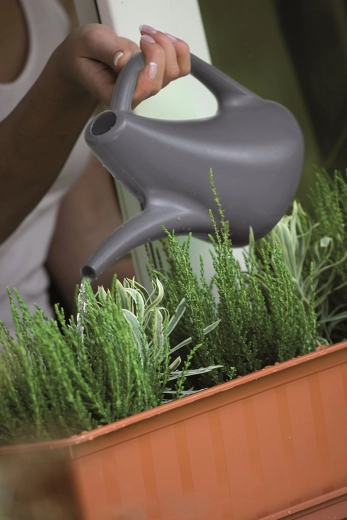 Elegancka konewka EOS w popularnym szałwiowym odcieniu to świetny wybór do codziennej pielęgnacji roślin. Wydłużona szyjka umożliwia skierowanie strumienia wody bezpośrednio do korzeni, dzięki czemu nie dochodzi do rozlewania ani zbędnego moczenia liści. Dzięki ergonomicznemu uchwytowi konewka wygodnie leży w dłoni i jest lekka w użyciu nawet przy pełnym napełnieniu.