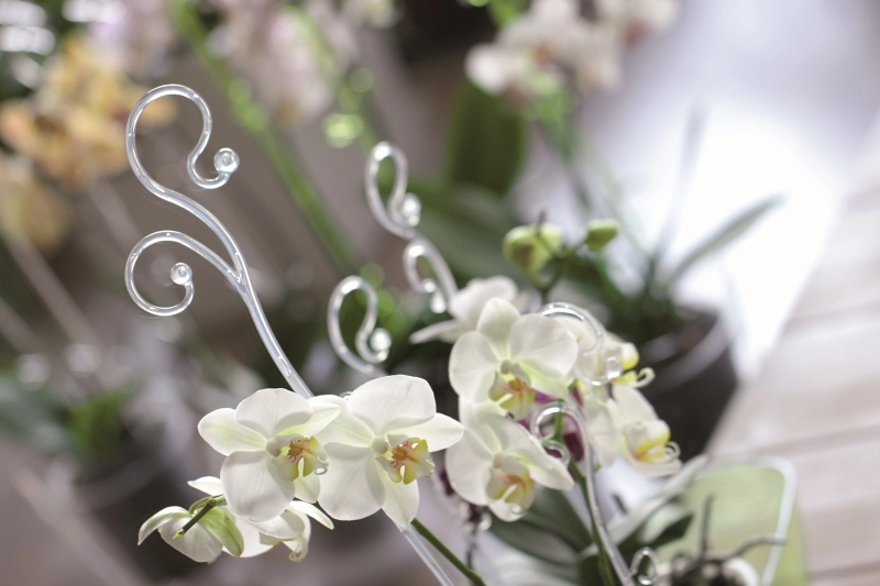 Delikatne krzywizny i boczne oczka elegancko prowadzą łodygi i dodają storczykom stylu bez kompromisu dla stabilności.
