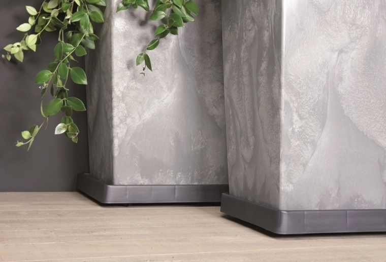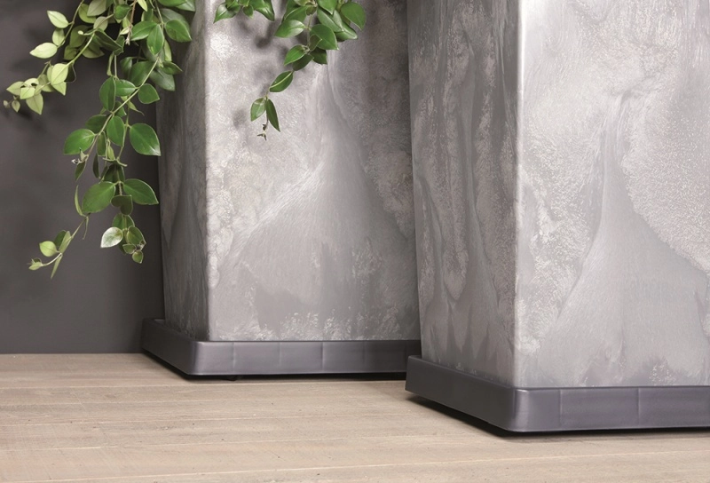 Ta kwadratowa ruchoma podstawka o wymiarach 29,2 × 29,2 cm jest idealna do wnętrz i na zewnątrz. Umożliwia łatwe przestawianie roślin za optymalnym światłem lub podczas sprzątania, a jednocześnie minimalizuje ryzyko porysowania podłóg. Nowoczesne antracytowe wykończenie pasuje do różnych stylów aranżacji.