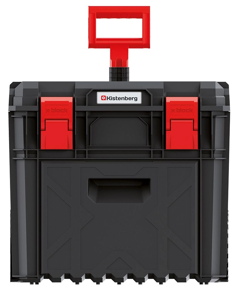 Profesjonalna walizka narzędziowa na kółkach X-BLOCK PRO o solidnej konstrukcji, z teleskopową rączką i dużymi kołami dla łatwego transportu. Oferuje modułowe łączenie z innymi skrzynkami, uszczelnienie przeciw kurzowi i wodzie oraz nośność do 50 kg dla bezpiecznego przechowywania nawet ciężkich narzędzi.