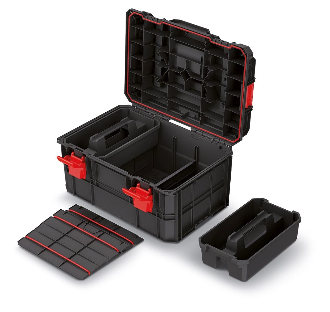 Profesjonalna modułowa skrzynia na narzędzia z serii X‑BLOCK do wymagających warunków. Oferuje wytrzymałą żebrowaną konstrukcję, uszczelnienie pyło‑ i wodoodporne, nośność do 50 kg oraz możliwość łączenia w zestawy. Wybrane modele dzięki aluminiowym listwom pozwalają zamienić pokrywę w stabilny stół roboczy, a moduły wytrzymują bezpośrednie obciążenie do 120 kg, co umożliwia użycie jako stopień.