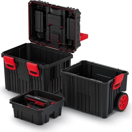 Wytrzymała modułowa skrzynia narzędziowa Kistenberg HEAVY oferuje wysoką odporność, łatwy transport i przemyślaną organizację dla profesjonalistów i majsterkowiczów. Dzięki wzmocnionej konstrukcji z wysokowytrzymałych polimerów, wysokiej jakości uszczelnieniu przeciw pyłowi i wodzie oraz dużym kółkom z elastomerem sprawdza się w wymagających warunkach na budowie i w warsztacie.