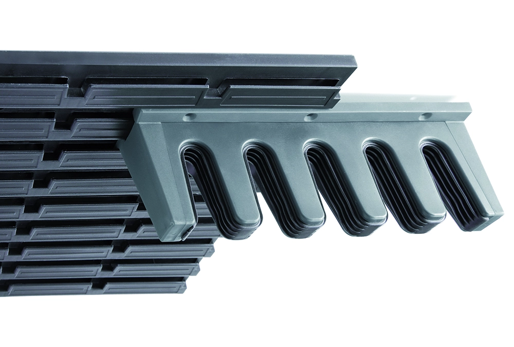 Elastyczna, antypoślizgowa wkładka pewnie zaciska trzonki bez rysowania i utrzymuje je w pozycji pionowej.
