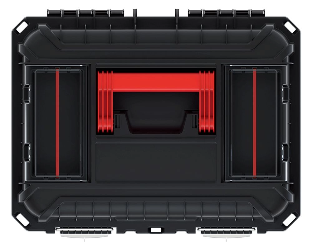 Dzięki solidnemu plastikowemu uchwytowi skrzynkę wygodnie się przenosi, a wyjmowana wkładka oszczędza czas podczas pracy – to, co najważniejsze, masz zawsze pod ręką. Praktyczne zewnętrzne przegrody dodają dodatkowej przestrzeni na śrubki, bity i inne małe elementy.