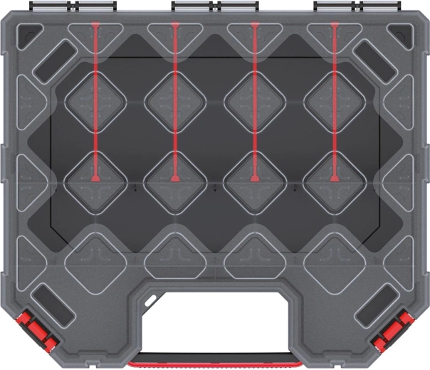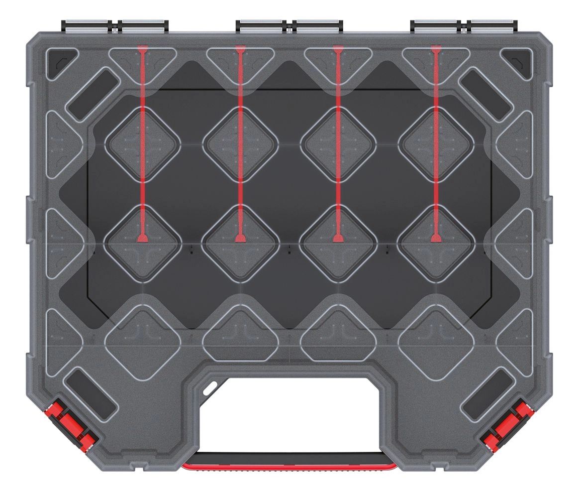 Utrzymaj porządek w warsztacie, domu i samochodzie. Ten kompaktowy, a jednocześnie pojemny organizer oferuje sprytne rozmieszczenie dzięki wymiennym przegrodom, więc łatwo dostosujesz wnętrze do bieżących potrzeb. Przezroczysta pokrywa z PP zapewnia doskonałą widoczność zawartości oraz odporność na codzienne użytkowanie.