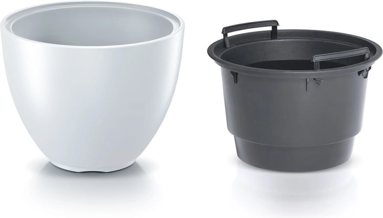 - Wyjmowany wkład – szybka pielęgnacja, łatwe przesadzanie i lepsza kontrola podlewania.