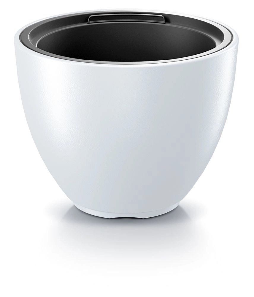 Gładka matowa powierzchnia i okrągły kształt świetnie prezentują się w każdym wnętrzu. Biały kolor optycznie rozjaśnia przestrzeń i podkreśla zieleń liści.