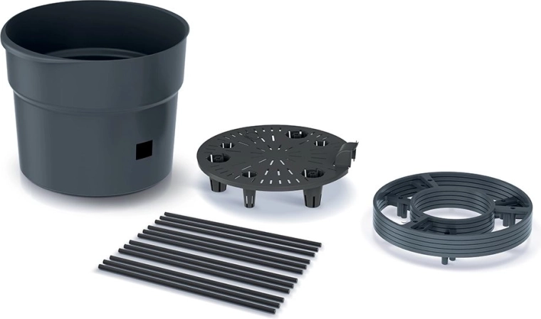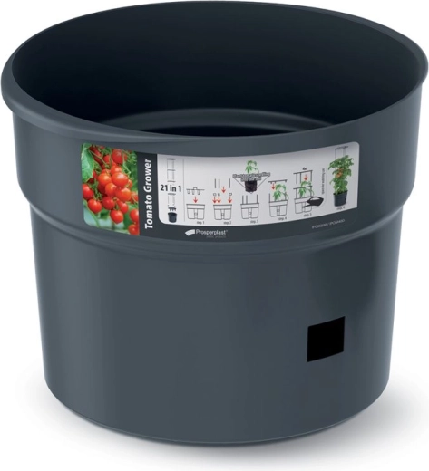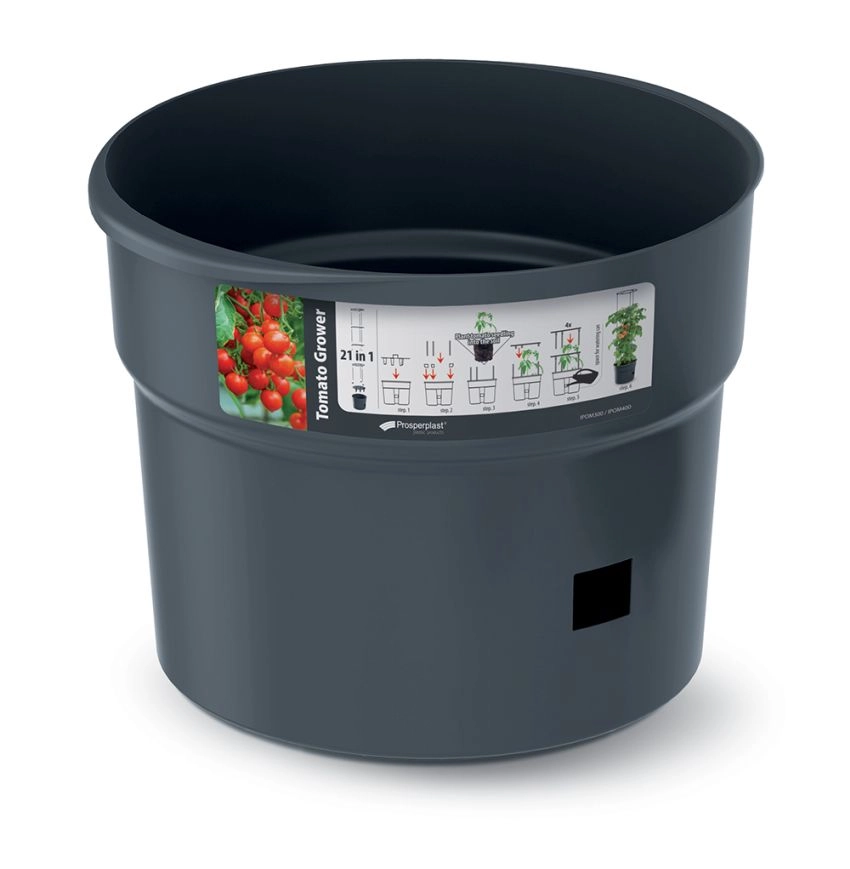 Wykorzystaj każdy centymetr przestrzeni i zapewnij roślinom idealne warunki. Ta 18‑litrowa donica ze zintegrowaną podporą daje pomidorom i innym roślinom pnącym stabilność, optymalny drenaż oraz dużo miejsca dla korzeni. Trwały antracytowy plastik jest odporny na warunki pogodowe i łatwy w utrzymaniu.