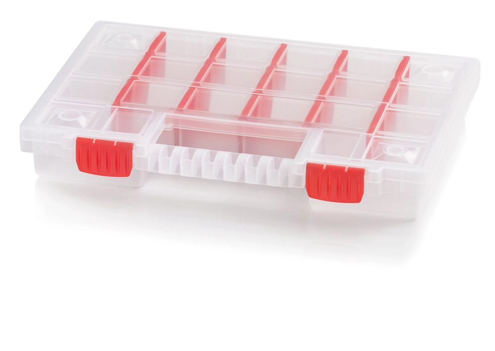 - Elastyczny układ: wyjmowane przegrody dla różnych rozmiarów elementów