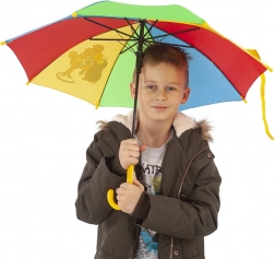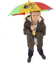 Koniec pośpiechu przed ulewą – parasol dziecięcy z motywem KRETEK jest praktyczny, lekki i bezpieczny do codziennego noszenia. Kolorowe panele z wesołymi ilustracjami przyciągają uwagę, a żółta zakrzywiona rączka idealnie leży w małych dłoniach.