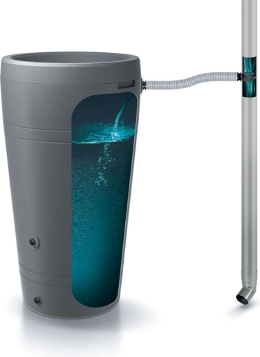 Kieruj wodę z pionowej rury spustowej bezpośrednio do beczki i oszczędzaj wodę dla ogrodu i domu.